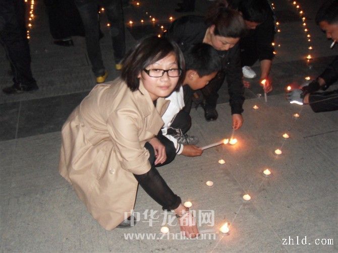 4月18日晚,在市區(qū)五一廣場(chǎng),網(wǎng)友點(diǎn)燃了為玉樹災(zāi)區(qū)祈福的蠟燭。