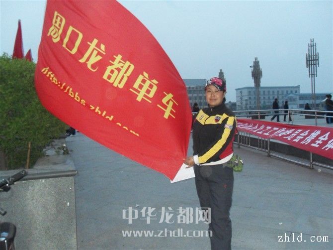 4月18日傍晚,一名網(wǎng)友把“周口龍都單車”旗幟插在五一廣場(chǎng),為祈?;顒?dòng)布置場(chǎng)地。