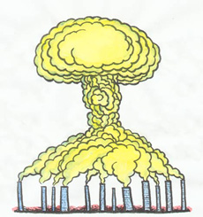 ??? 蘑菇云,戰(zhàn)爭和死亡的代名詞,人們說起它無不避若蛇蝎,然而可笑的是,人類對于空氣污染,全球變暖,這顆無形的原子彈卻是重視不足,任它漸漸發(fā)揮出威力。須知,戰(zhàn)爭只能毀滅一個(gè)國家或者民族,但是污染地球,導(dǎo)致的是就是全人類的滅亡。