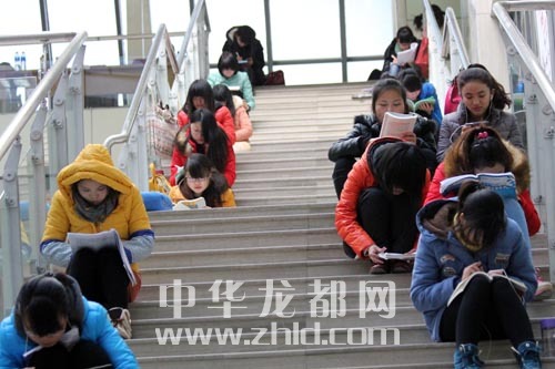 圖書館的走廊兩旁,坐滿了正在準(zhǔn)備考研的大四學(xué)生???