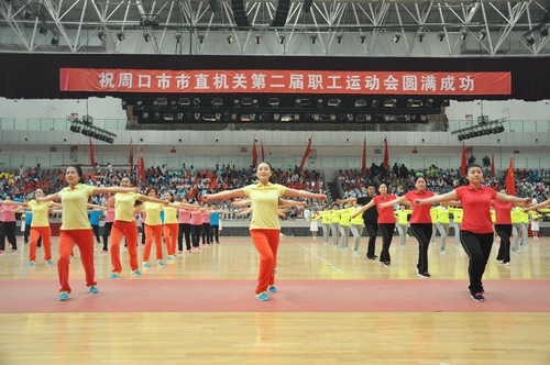 ????開幕式后,由周口市教育局、周口市公路局、周口市直機(jī)關(guān)事務(wù)管理局、周口市直幼兒園四個(gè)參賽單位共同表演的第九套廣播體操拉開了文體表演的序幕。周口師范學(xué)院推薦的青春健美舞,周口太極協(xié)會(huì)的太極刀、太極劍、太極扇表演,周口市秧歌協(xié)會(huì)推薦的中老年健美舞和周口三通武校帶來(lái)的精彩武術(shù)表演等全民健身項(xiàng)目展演。