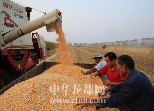 ???? 圖① 9月27日,扶溝縣大李莊鄉(xiāng)馮老村農(nóng)民正在收玉米。該縣各鄉(xiāng)鎮(zhèn)群眾抓住天氣晴好的有利時(shí)機(jī),組織協(xié)調(diào)機(jī)械收秋,做到成熟一塊收割一塊,確保顆粒歸倉(cāng)。黃金峰 攝????