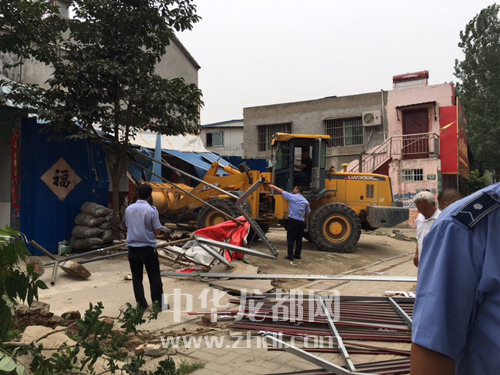 ????正當(dāng)拆除違章建筑物順利進(jìn)行之時(shí),一家飯店老板順著梯子爬上了二層的違章棚棚頂,與城管隊(duì)員“對(duì)峙”,令拆除工作一度陷入僵局。通過對(duì)其及家人細(xì)致地宣傳與講解,最終,店主既心疼又懊悔地看著自家的違章棚變成一堆廢銅爛鐵。
