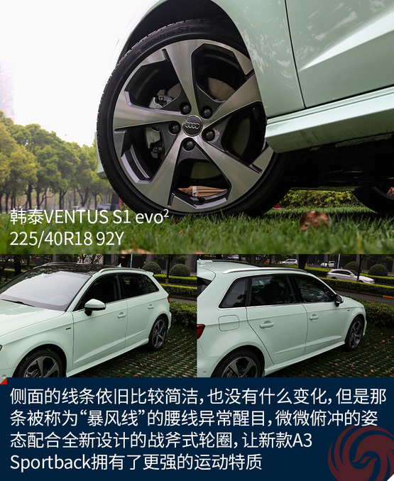 側(cè)面的線條依舊比較簡(jiǎn)潔,也沒(méi)有什么變化,但是那條被稱為“暴風(fēng)線”的腰線異常醒目,微微俯沖的姿態(tài)配合全新設(shè)計(jì)的戰(zhàn)斧式輪圈,讓新款A(yù)3 Sportback擁有了更強(qiáng)的運(yùn)動(dòng)特質(zhì)。