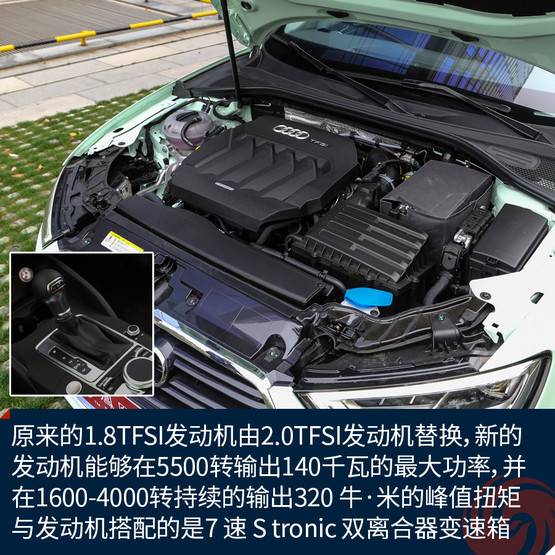 動(dòng)力的改變也許是此次另一個(gè)升級(jí)的重點(diǎn),除了1.4TFSI發(fā)動(dòng)機(jī),原來(lái)的1.8TFSI發(fā)動(dòng)機(jī)將由2.0TFSI發(fā)動(dòng)機(jī)替換,新的發(fā)動(dòng)機(jī)能夠在5500轉(zhuǎn)輸出最大功率為140千瓦,并在1600-4000轉(zhuǎn)持續(xù)的輸出320 牛·米的峰值扭矩。與兩臺(tái)發(fā)動(dòng)機(jī)搭配的7 速 S tronic 雙離合器變速箱。憑借動(dòng)力的優(yōu)勢(shì),新A3 40TFSI車型的百公里加速時(shí)間縮短了0.1秒,但是油耗會(huì)相應(yīng)的有所減少。