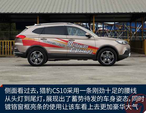 側(cè)面看過(guò)去,獵豹CS10采用一條剛勁十足的腰線從頭燈到尾燈,展現(xiàn)出了蓄勢(shì)待發(fā)的車(chē)身姿態(tài),同時(shí)鍍鉻窗框亮條的使用讓該車(chē)看上去更加豪華大氣。尾部方面,獵豹CS10給人感覺(jué)比較圓潤(rùn)飽滿,下方配有大面積的銀色護(hù)板,并采用雙邊共出的排氣布局,在氣場(chǎng)方面做得非常到位。