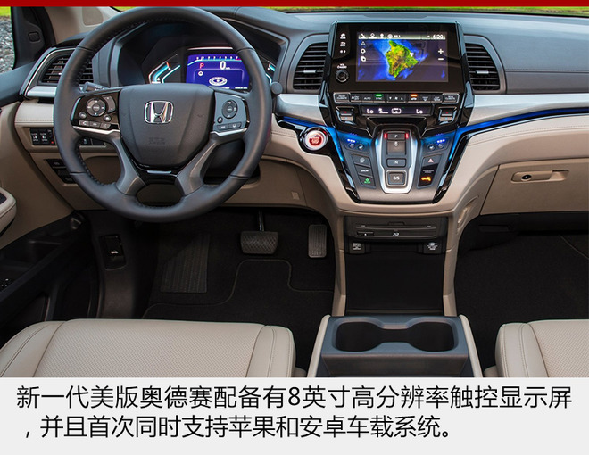 內(nèi)飾方面,新一代美規(guī)奧德賽配備有8英寸高分辨率觸控顯示屏,并且首次同時支持蘋果和安卓車載系統(tǒng),后排也安裝有10.2英寸液晶顯示屏,通過內(nèi)置應(yīng)用程序可使乘客看到實時出行進度。同時,新車的多媒體影音系統(tǒng)還支持4G LTE、WiFi和USB連接。此外,新車還配備有腳踢感應(yīng)開啟尾門、安全超感系統(tǒng)、液晶儀表盤、魔術(shù)座椅以及手機無線充電板等。