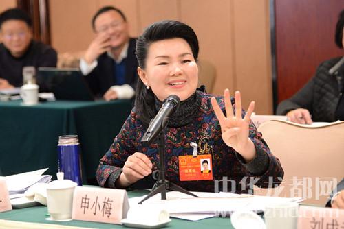 申小梅代表就如何發(fā)揚(yáng)光大傳統(tǒng)文化藝術(shù)提出建議。記者王映攝
