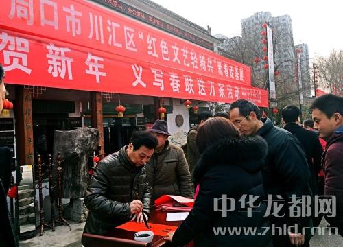 中華龍都網(wǎng)訊 (周口報(bào)業(yè)全媒體記者 彭慧 文/圖)春節(jié)即將來(lái)臨,喜慶的氛圍逐漸濃厚,近來(lái)中心城區(qū)相繼舉辦文化活動(dòng),為廣大市民義寫春聯(lián),送去新春的祝福。2月9日上午,川匯區(qū)、川匯區(qū)書法家協(xié)會(huì)聯(lián)合華威民俗文化博物苑,積極響應(yīng)“紅色文藝輕騎兵”新春走基層號(hào)召,一副副吉祥喜慶寓意的春聯(lián),免費(fèi)贈(zèng)送給千家萬(wàn)戶。據(jù)悉,這一公益活動(dòng)已持續(xù)14年之久。