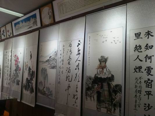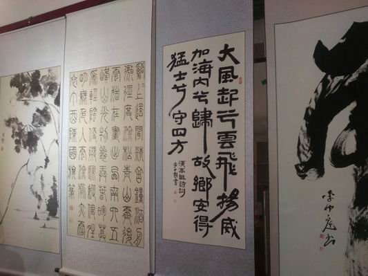 本次書畫展由中共沈丘縣委宣傳部、縣文聯(lián)主辦,縣書協(xié)、縣美協(xié)承辦,展出我縣書畫家創(chuàng)作的書畫精品一百多幅。書法作品五體俱全,其中范曉公、高望、李少華等人的行草書;陳國旗的小篆;李中魁、劉景的隸書;趙東明、李勇的楷書各具風(fēng)采,引人注目。國畫作品花鳥、人物、山水皆有,青年畫家吳帆的《鐘馗圖》孔武有力、王志全的《翠竹》》筆墨精到、女畫家海納的《山水》氣勢磅礴,老畫家王蒞泉的《貓蝶嬉戲》功力深厚。