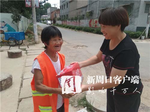 上午10時(shí)許,欣中基清潔公司經(jīng)理張志宏來到邵寨行政村??吹铰访娓筛蓛魞簦芨吲d。除了例行巡視,張志宏此行還有一項(xiàng)任務(wù):向每位保潔員發(fā)放一件飲料?!疤鞖獬掷m(xù)高溫,保潔員們露天辛勤勞動(dòng),給村民們創(chuàng)造了良好的生活環(huán)境。因此,公司決定開展慰問活動(dòng)?!苯舆^飲料,邵天錄等6名保潔員滿臉笑容地連聲道謝。