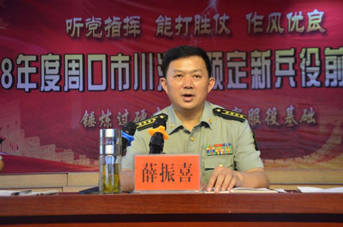 8月17日上午,川匯區(qū)預定新兵役前教育訓練動員會上,周口市征兵辦公室主任、周口軍分區(qū)副司令員薛振喜結合自身經歷,為現場近300名體檢、政審雙合格預征青年上了一堂生動的國防教育課,現場掌聲雷動。