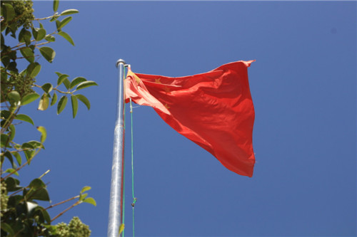 神圣而又雄壯的國歌響起了。孩子們瞪大了眼睛,小擎旗手猛地甩出臂膀,將耀眼的五星紅旗撒在陽光下,全體孩子們行少先隊隊禮,注視著國旗冉冉升起。孩子們的歌聲越來越嘹亮,直到最后還在高喊:“前進,前進進……”