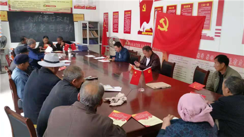 “我志愿加入中國共產(chǎn)黨,擁護黨的綱領(lǐng),遵守黨的章程,履行黨員義務(wù)……”在汲水鄉(xiāng)張嶺行政村室,汲水鄉(xiāng)黨委副書記王申帶領(lǐng)全體黨員面對黨旗,一起重溫入黨誓詞,并學(xué)習(xí)黨章黨規(guī)。