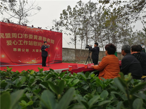 11月21日上午,民盟周口市委到黃寨敬老院慰問。周口市人大常委會(huì)原副主任、民盟周口市委原主委王建莊,民盟周口市委主委、市科協(xié)主席李寧,民盟周口市委專職副主委兼秘書長康波;商水縣委副書記、政法委書記閆冬梅,縣政協(xié)副主席、發(fā)改委主任朱學(xué)習(xí),縣民政局局長朱赫,黃寨鎮(zhèn)黨委書記朱宏偉,鎮(zhèn)長高延等參加慰問活動(dòng)。