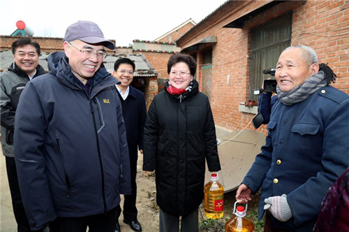 李留心來到顧福元等貧困戶的家中,送上米面油等慰問品,聽取他們對河南農(nóng)大幫扶工作的意見和建議。李留心說,在對馮老村前期的幫扶工作中,河南農(nóng)大投入了大量的人力、物力、財力,幫助馮老改善了村容村貌,讓不少群眾擺脫了貧困,取得了較為顯著的成績。但幫扶不能斷線,貧困群眾有什么要求,河南農(nóng)大都會積極幫助解決,充分發(fā)揮自身在農(nóng)業(yè)技術等方面的優(yōu)勢,長期幫助馮老搞好農(nóng)業(yè)生產(chǎn),發(fā)展集體經(jīng)濟,讓家家戶戶都能有事情做,讓更多的群眾早日徹底擺脫貧困,常吃常有,過上富裕生活。