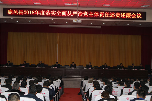 1月4日上午,鹿邑縣2018年度落實(shí)全面從嚴(yán)治黨主體責(zé)任述責(zé)述廉會(huì)議在縣委黨校一樓報(bào)告廳召開(kāi)??h委書(shū)記梁建松出席會(huì)議并講話??h委常委、紀(jì)委監(jiān)察委主任韓林主持會(huì)議??h直各局委主要負(fù)責(zé)人、派駐紀(jì)檢組、巡查辦主要負(fù)責(zé)人以及各鄉(xiāng)鎮(zhèn)辦事處黨(工)委書(shū)記、紀(jì)檢書(shū)記參加會(huì)議。