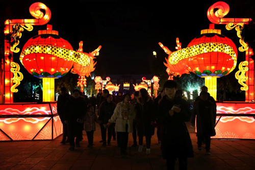 本次燈會以老子為主題火力全開的激光鐳射創(chuàng)意,真的讓不少游客點(diǎn)贊。新年紅紅火火肥豬迎新年、預(yù)示著來年走好運(yùn)的喜迎春聯(lián)、老子文化思想的八卦精髓展現(xiàn)、象征新年新福氣的大紅福等,都融入在這暖洋洋的新春大禮中,大家紛紛拿出手機(jī)、相機(jī),擺出各種POSE在主題燈會面前合影留念,這里儼然已經(jīng)成了自拍勝地人間盛景、好不熱鬧。