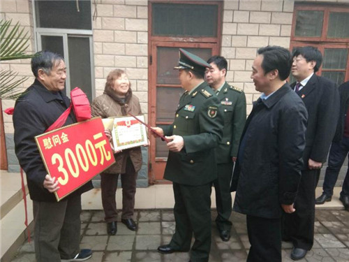 該縣擁軍優(yōu)屬“七送”活動具體為:送“功臣之家”牌匾、送立功授獎喜報(bào)、送慰問金、送慰問品、送春聯(lián)年畫、送軍屬光榮牌、送“周口好兵”宣傳卡等“大禮包”。