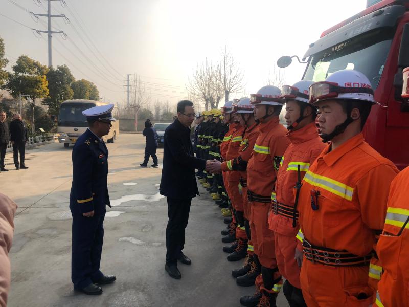 在開發(fā)區(qū)消防大隊(duì),王文峰與每一位消防隊(duì)員握手,詳細(xì)詢問(wèn)他們的工作、生活、學(xué)習(xí)情況。王文峰指出,2018年,開發(fā)區(qū)消防大隊(duì)牢記“聽黨指揮,能打勝仗,作風(fēng)優(yōu)良”,努力訓(xùn)練,敢于戰(zhàn)斗,面對(duì)一系列急難險(xiǎn)重任務(wù)能夠拉得出、打得贏,為保障人民群眾生命財(cái)產(chǎn)安全作出了重要貢獻(xiàn)。新的一年,全市消防救援隊(duì)伍要繼續(xù)發(fā)揚(yáng)特別能吃苦、特別能戰(zhàn)斗的優(yōu)良傳統(tǒng),加強(qiáng)應(yīng)急救援綜合能力建設(shè),真正發(fā)揮好應(yīng)急救援主力軍和國(guó)家隊(duì)的職能作用。