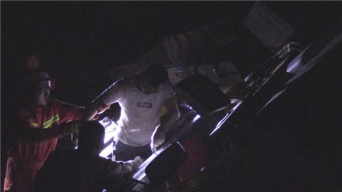 當夜,消防指戰(zhàn)員接到調(diào)派命令后迅速趕往事故現(xiàn)場。指揮員觀察了解得知,側翻的是一輛重型推土車,由于作業(yè)區(qū)地面不平,司機在倒車時車輛發(fā)生側翻,欲打開車門跳車未果,左臂反而被車輛駕駛室一側死死壓在地面上,無法動彈。當時工地上沒有同事,周邊也沒有行人,呼救無應后,司機忍著巨烈疼痛摸到手機電話求救。