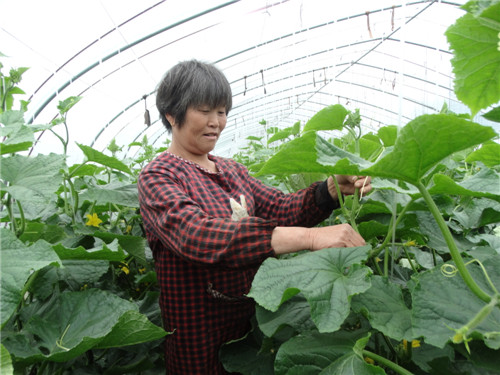 4月24日,沈丘縣周營(yíng)鎮(zhèn)趙莊村生態(tài)蔬菜大棚基地里,綠油油的吊蔓黃瓜長(zhǎng)勢(shì)喜人,少量已采摘上市。忙碌著的菜農(nóng)王翠霞告訴記者:“俺今年種了20畝地的大棚黃瓜,從種子肥料,到用水用藥,都有講究,要按標(biāo)準(zhǔn)化生產(chǎn),這樣種出來的黃瓜品質(zhì)好,客商搶著要。一畝地大棚瓜果蔬菜的年收入超過1.5萬元?!?/p>