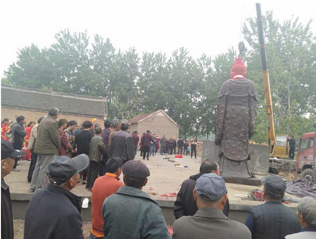 當日一大早,人們紛紛來到盤古女媧塑像現(xiàn)場,在包村干部朱聯(lián)玉、木崗寺行政村支部書記趙克龍及村委一班人的組織下,人們敲起了響亮的盤鼓,跳起了歡快的舞蹈,迎接盤古女媧神像的到來。
