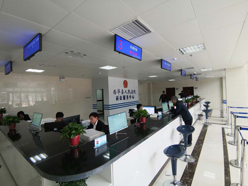 在西華縣人民法院訴訟服務中心,當事人及社會公眾可通過訴訟服務智能系統(tǒng)的自助終端進行網上立案、案件查詢、訴訟引導、閱卷申請、聯(lián)系法官和查看法庭位置、開庭公告等信息,并可打印文書樣式。