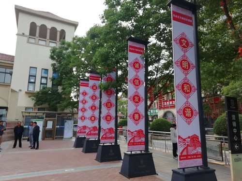 記者了解到,該社區(qū)圍繞自身特點,結(jié)合社會熱點,以社會主義核心價值觀為載體,貫徹落實“以文化城”的城市發(fā)展理念,以“愛在鄰里”為主題,結(jié)合中華民族優(yōu)秀傳統(tǒng)文化,涵蓋紅色黨建、文明禮儀、家風家訓(xùn)、衛(wèi)生健康教育、環(huán)保知識、安全生產(chǎn)、社區(qū)工作等方面知識內(nèi)容,大力宣傳“家和、鄰睦、綠色、共建、共治、共享”的社區(qū)發(fā)展理念和“健康、衛(wèi)生、文明”的生活理念。一幅幅圖文并茂的宣傳板,一句句引人深思的文明標語,都透露出濃濃的文化氣息。該活動既傳播了文明禮儀、傳統(tǒng)文化、科學(xué)常識、鄰里和諧、衛(wèi)生保健等方面知識,使居民在耳濡目染中受到教育,又傳達了社區(qū)支部、居委會的職能和相關(guān)業(yè)務(wù),讓居民們更加了解社區(qū)工作內(nèi)容,為建設(shè)和諧文明社區(qū)增添了一個嶄新的交流窗口。