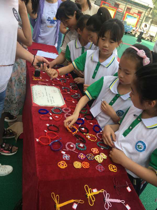 5月25日上午,沈丘縣中國結(jié)第七代傳承人李?;ㄗ哌M(jìn)槐店鎮(zhèn)回民小學(xué),和學(xué)?!爸袊Y(jié)”手工編織興趣班的20名學(xué)生舉行“愛心義賣,情暖校園”主題活動。不到半小時,100多件作品被搶購一空還預(yù)定了很多。據(jù)悉,這次義賣共得到1200余元,將全部捐給“槐店鎮(zhèn)中心學(xué)校教育基金”,用來資助該鎮(zhèn)經(jīng)濟困難師生、獎勵優(yōu)秀教師和學(xué)生、資助教育教研等重大活動項目。