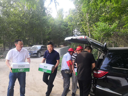 6月4日中午,太康縣委宣傳部常務副部長趙勇與瀘州老窖(懷舊)公司豫南區(qū)負責人劉光軒等工作人員一起,在王集鄉(xiāng)慰問后又不顧炎熱來到了馬廠鎮(zhèn)麥收一線,給工作人員送去礦泉水、粽子、牛奶等用品。