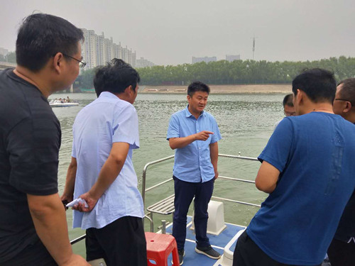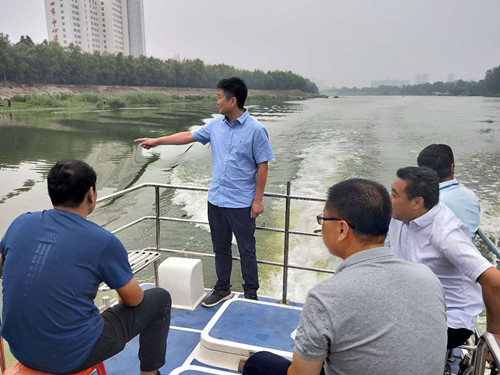 李湛一行乘船東行,通過(guò)實(shí)地查看、聽(tīng)取介紹、詢問(wèn)情況等方式,詳細(xì)了解河道周邊和河流沿線環(huán)境狀況。