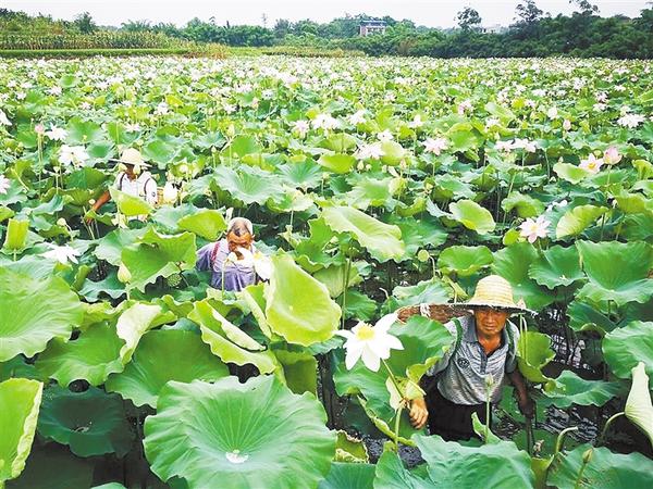 盛夏時節(jié),沈丘縣卞路口鄉(xiāng)南郭莊村400畝荷塘里的蓮蓬成熟,荷塘里一片繁忙景象。近年來,該村因地制宜,種植蓮藕,讓村民增收不少。