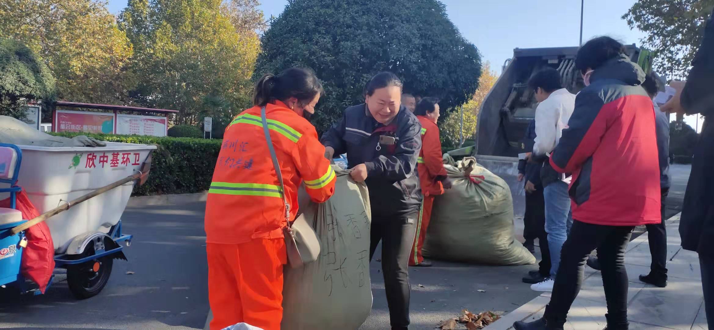 當天是川匯區(qū)啟動“推進鄉(xiāng)村振興、關(guān)愛環(huán)衛(wèi)工人”專項行動的第一天。該行動采取“以枯葉換票證、憑票證兌換用餐服務”模式,引導鼓勵環(huán)衛(wèi)工人收集枯葉。在新民街北段落葉收集點,前來送枯葉的環(huán)衛(wèi)工人絡(luò)繹不絕。李宗喜實地查看活動開展情況,與環(huán)衛(wèi)工人、收集點工作人員親切交流,了解工作中遇到的問題,提出指導意見。