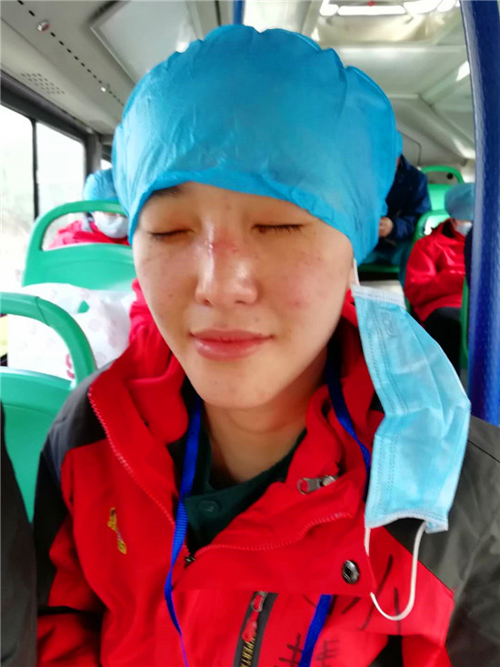 四個(gè)小時(shí)很快就在緊張忙碌中過去了。接班的新疆醫(yī)療隊(duì)護(hù)士來了,催促孫慧慧趕緊下班。在密閉的環(huán)境,穿著密不透風(fēng)的防護(hù)服工作,時(shí)間長(zhǎng)了會(huì)胸悶缺氧,“她就一直催我下班”。