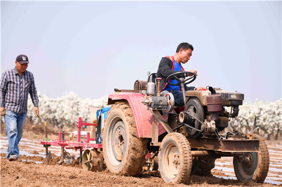 春光明媚,土壤濕潤,正是春耕春播的好時機,農(nóng)民們給玉米、冬小麥、棉花等農(nóng)作物開播、澆水、施肥,為秋季豐收做好布局。近日,記者在黃泛區(qū)看到,農(nóng)民們種植玉米已經(jīng)實行機械化,下種、施肥、打藥、壓上薄膜,一次成型,減輕了勞作的壓力。