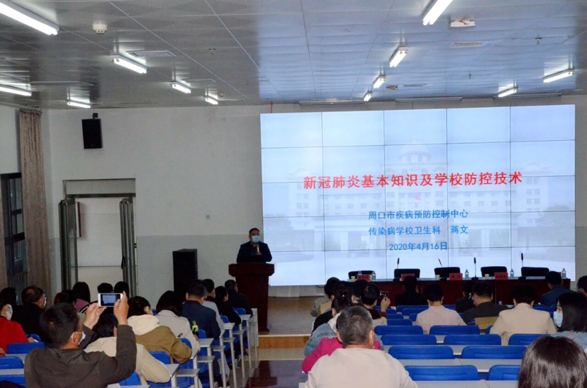 會(huì)議邀請(qǐng)周口市疾病防控中心專家,就新冠肺炎基本知識(shí)和防控措施進(jìn)行了集中培訓(xùn),并針對(duì)開(kāi)學(xué)前、開(kāi)學(xué)當(dāng)日和開(kāi)學(xué)后的防控工作提出意見(jiàn)和建議。