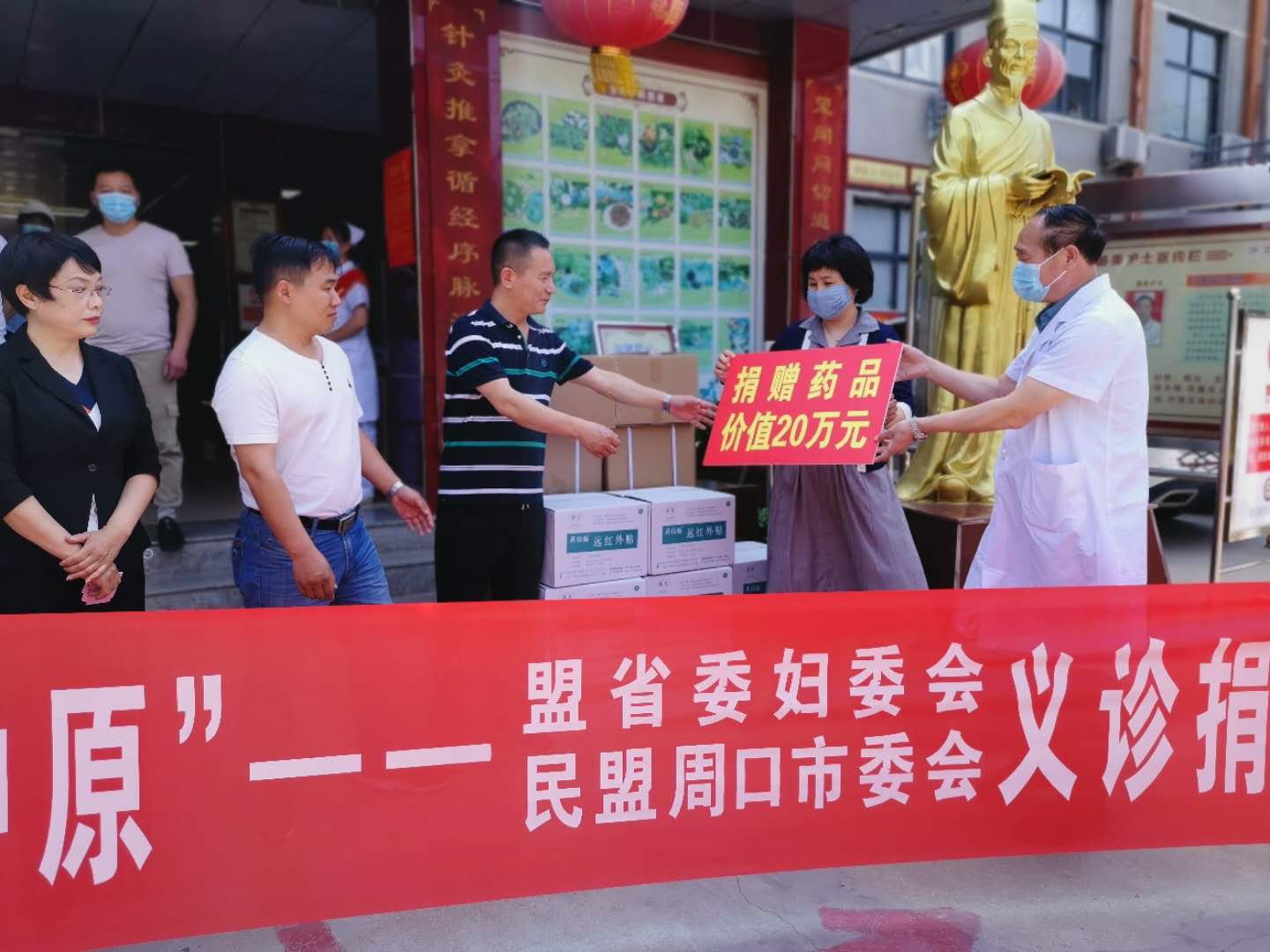 在義診活動(dòng)現(xiàn)場(chǎng),周口市買氏中醫(yī)文化研究會(huì)聯(lián)合河南省中醫(yī)藥研究院,為川匯區(qū)中醫(yī)院周邊社區(qū)群眾捐贈(zèng)價(jià)值20萬元治療頸肩腰腿痛和乳腺疾病的藥物。