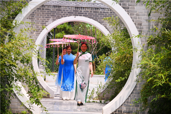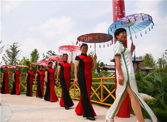 周口森林公園經(jīng)過近年的建設(shè)已經(jīng)成為市區(qū)休閑的一處好去處,風景優(yōu)美,園林幽深,目前,盡管森林公園附近道路施工,進出還不方便,但是仍吸引著很多居民前去休閑游玩,愛美的大媽們更是在這里秀一把,7月16日上午,來自市區(qū)模特隊的大媽們,穿著靚麗的旗袍,在荷葉飄香、假山園林秀林深處,開心地進行一場模特秀。