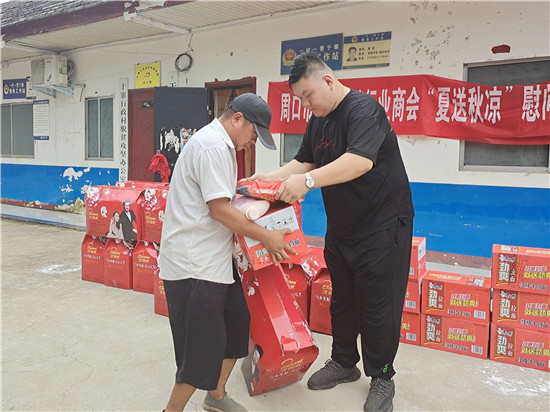 8月2日,周口市網(wǎng)紅營(yíng)銷行業(yè)商會(huì)與周口市東方會(huì)展商會(huì)積極響應(yīng)周口市工商聯(lián)助力脫貧攻堅(jiān)和“百企幫百村”活動(dòng)的號(hào)召。商會(huì)會(huì)長(zhǎng)于少尉帶領(lǐng)商會(huì)志愿者前往鄲城縣宜路鎮(zhèn)于寨行政村,為78戶貧困戶送去大米、夏涼被、洗衣液、皂粉、油煙去污劑、方便面等物資。