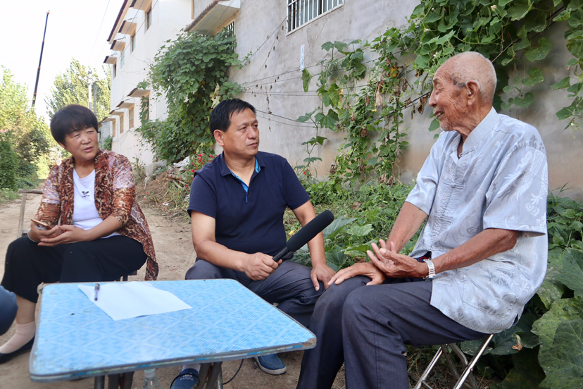 在中國(guó)人民抗日戰(zhàn)爭(zhēng)勝利75周年之際,扶溝縣新四軍研究會(huì)、吉鴻昌精神研究會(huì)名譽(yù)會(huì)長(zhǎng)張敦、何俊山、尹發(fā)展和秘書(shū)長(zhǎng)李偉,扶溝縣唯伊傳媒、扶溝縣天和文化傳媒負(fù)責(zé)人與縣融媒體記者一起,于9月4日驅(qū)車(chē)趕往縣城南15公里的革命老區(qū),有豫東小延安之稱(chēng)的扶溝縣練寺鎮(zhèn)下坡行政村何樓村,走訪(fǎng)抗日老戰(zhàn)士、新四軍老戰(zhàn)士何天順。