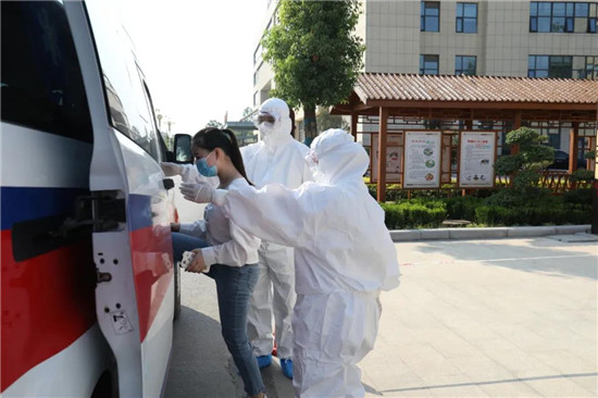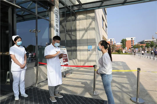 “您好,您哪兒不舒服???近期去過疫區(qū)嗎?”鄲城縣第二醫(yī)療健康服務(wù)集團(tuán)鄲城縣中醫(yī)院門診樓前預(yù)檢分診入口處,分診護(hù)士正仔細(xì)詢問一名就診患者?!拔矣悬c發(fā)燒、咳嗽,10天前從某省回來?!狈衷\護(hù)士經(jīng)詳細(xì)詢問其流行病學(xué)史,在做好登記后,護(hù)士為患者更換醫(yī)用外科口罩,并引導(dǎo)患者到發(fā)熱門診......這是9月8日下午,在鄲城縣第二醫(yī)療健康服務(wù)集團(tuán)鄲城縣中醫(yī)院開展的秋冬季新冠肺炎疫情防控應(yīng)急演練的一幕。