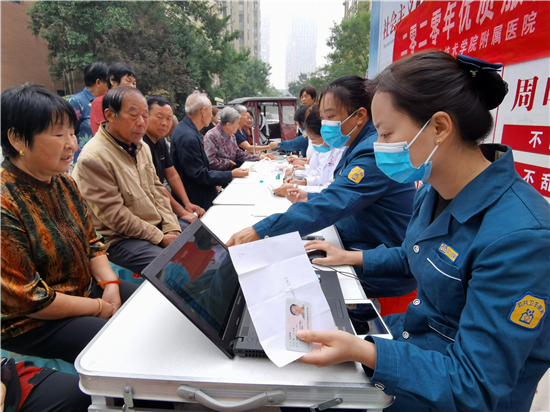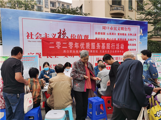 9月25日早上,周口市城鄉(xiāng)一體化示范區(qū)文昌社區(qū)衛(wèi)生服務中心的醫(yī)務人員在建業(yè)小區(qū)為居民測量血壓,并建立健康檔案。為滿足社區(qū)廣大群眾基本醫(yī)療衛(wèi)生服務需求,更貼心為轄區(qū)居民的服務,文昌社區(qū)衛(wèi)生服務中心開展2020年優(yōu)質(zhì)服務基層行活動,文昌社區(qū)衛(wèi)生服務中心組織醫(yī)務人員不定時走進各個小區(qū),為居民進行基礎項目體檢,并建立居民健康檔案。