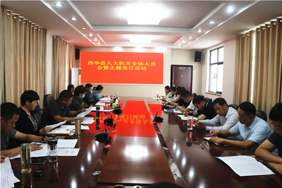 9月29日,西華縣人大常委會機(jī)關(guān)召開全體人員會議,安排部署黨風(fēng)廉政建設(shè)工作,開展“厲行節(jié)約黨員帶頭、反對浪費(fèi)從我做起”主題黨日活動??h人大常委會主任周曉燕、副主任龐有敬出席會議。