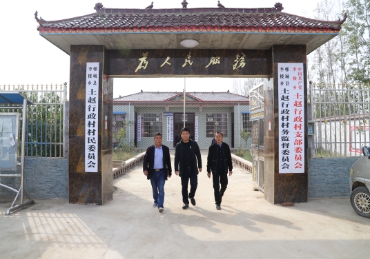 (圖為李樓鄉(xiāng)黨委副書記李文明和駐村第一書記、土趙村干部在村室調(diào)研)