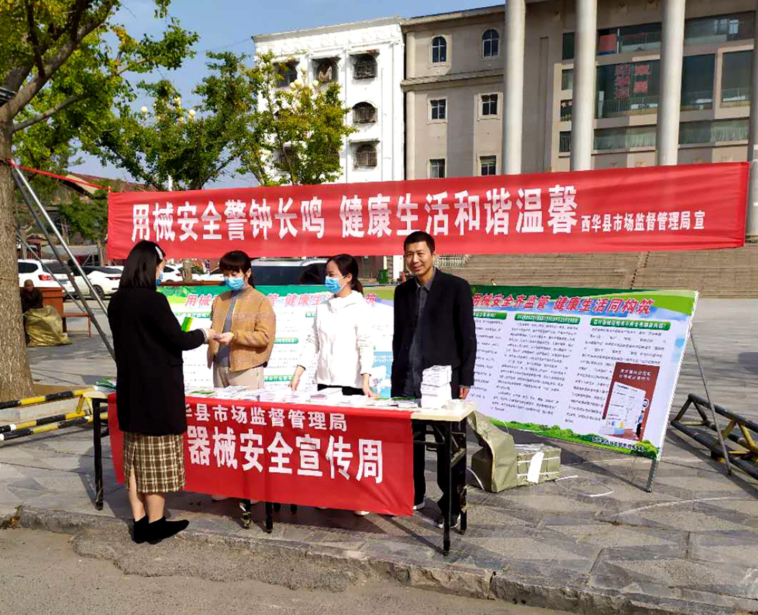 當(dāng)日,西華縣市場(chǎng)監(jiān)管局在縣城女?huà)z廣場(chǎng)開(kāi)展醫(yī)療器械安全宣傳周活動(dòng)。工作人員一大早就來(lái)到宣傳活動(dòng)現(xiàn)場(chǎng),掛條幅、擺桌子、設(shè)展板,忙得不亦樂(lè)乎。
