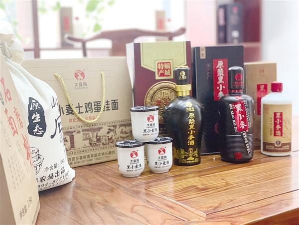 喜俊喜家庭農(nóng)場生產(chǎn)的黑小麥酒、大喜崗土雞蛋、大喜崗黑小麥面粉等系列明星產(chǎn)品。