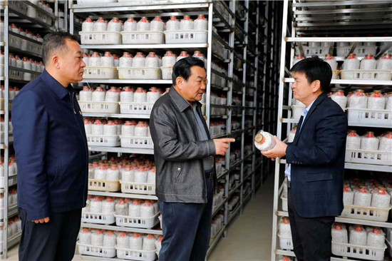 在羅古洞行政村預(yù)脫貧戶許廣東家中,王國璽聽取了該戶的幫扶情況匯報,詳細(xì)詢問許廣東政策落實情況,對該戶采取的針對性幫扶措給予了肯定。在華瑞農(nóng)牧食用菌基地,王國璽參觀了該基地產(chǎn)品展示廳、直播間,了解企業(yè)生產(chǎn)、擴建情況,夸贊該企業(yè)為全縣特色食用菌種植帶好了頭,起到了很好的示范帶動作用,鼓勵該企業(yè)要利用好網(wǎng)絡(luò)直播平臺,拓寬產(chǎn)品銷路,增加企業(yè)效益,帶動更多群眾受益。在君趙食用菌基地,王國璽實地了解該企業(yè)菌種制作、生產(chǎn)流程,并對菌包生產(chǎn)、加工過程提出了改進建議。