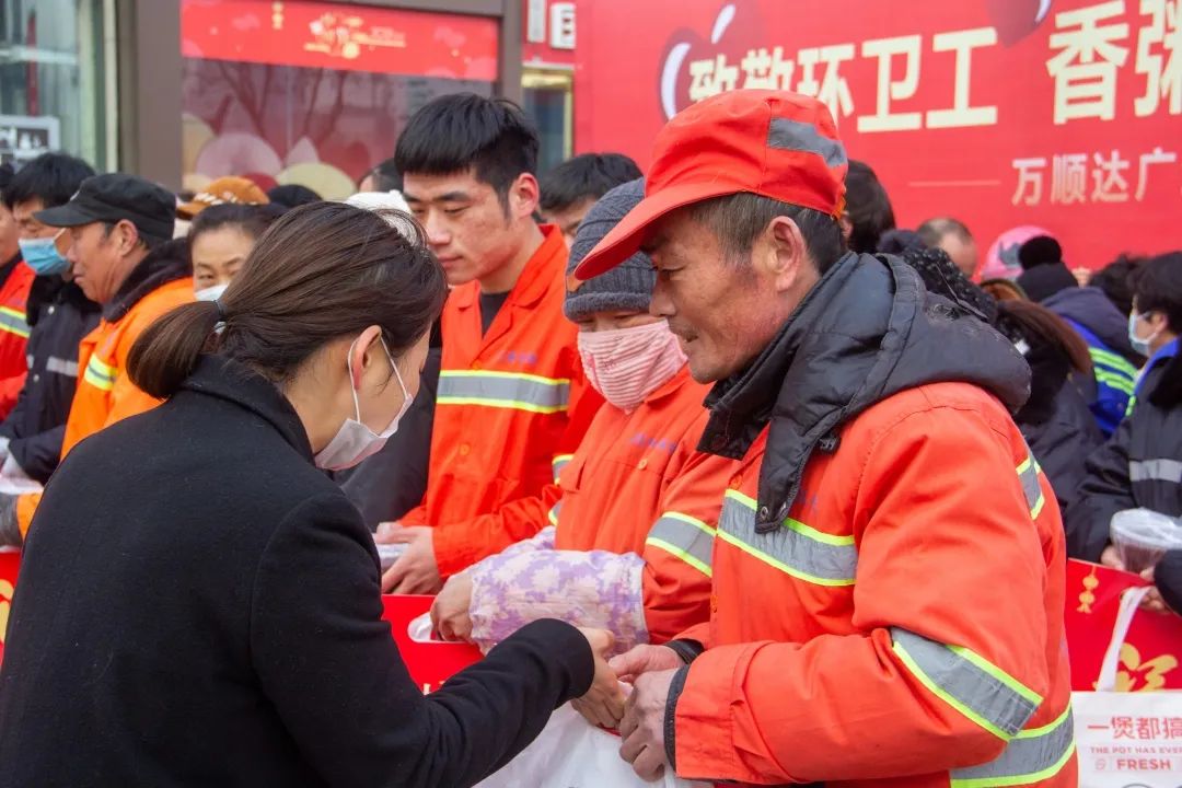據(jù)了解,萬順達(dá)廣場為了本次活動,精心為環(huán)衛(wèi)工人、公安民警準(zhǔn)備了八寶粥、披薩、油條等營養(yǎng)早餐,還有口罩等防疫用品,毛巾、春聯(lián)等生活用品。
