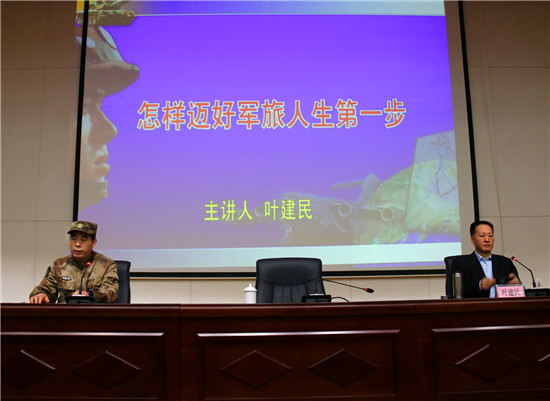 授課中,葉建民教授結(jié)合當(dāng)前國際國內(nèi)形勢和自身經(jīng)歷,深刻剖析了強(qiáng)國強(qiáng)軍的重要意義。為即將參軍入伍的“準(zhǔn)新兵”,如何端正入伍動(dòng)機(jī)、適應(yīng)部隊(duì)生活、弘揚(yáng)尚武精神、立志軍營建功立業(yè),指明了前進(jìn)方向。葉教授整個(gè)授課見解獨(dú)到、分析透徹,語言精彩、內(nèi)涵深刻,讓人深受啟發(fā)、獲益匪淺,授課過程中多次爆發(fā)熱烈的掌聲。